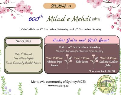 Alhamdulillah! On the historic occasion of the 600th Milad-e-Mehdi Maud (AHS), let’s come together as one Mehdavia family to celebrate, reflect, and revive our spiritual journey